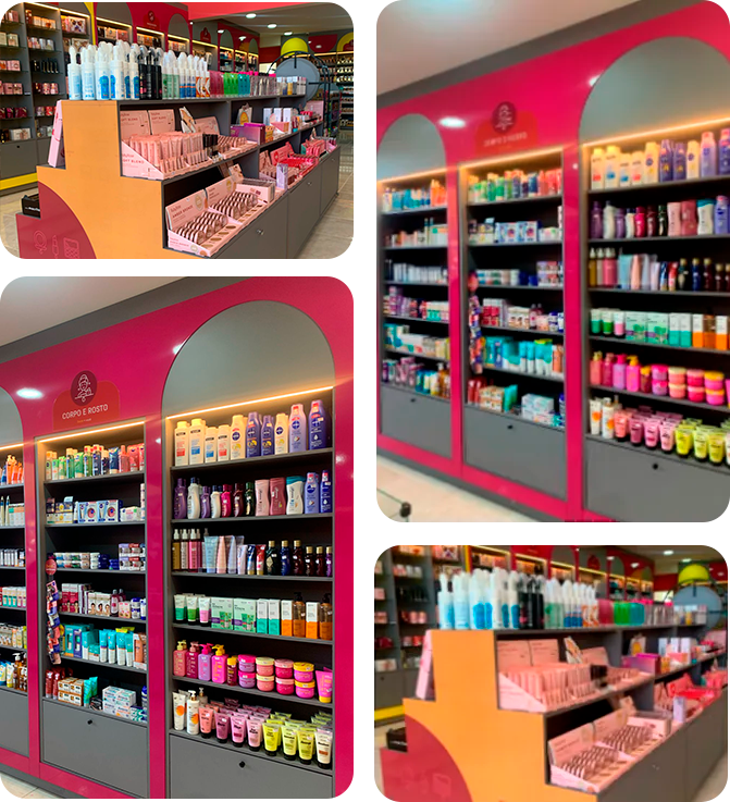 Loja completa de cosméticos com produtos capilares, maquiagem, perfumes, acessórios e muito mais. Um negócio para levar economia para os clientes e lucro para o empreendedor.